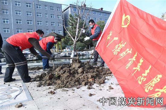 【本网讯】植树节来临之际,山能淄矿许厂煤矿公司团委组织11名团员青年开展“绿化家园、义务植树” 活动,青年志愿者对矿区内的树木进行移栽、修剪、灌溉,进一步美化了矿区环境。图为3月11日青年志愿者正在移栽树木。