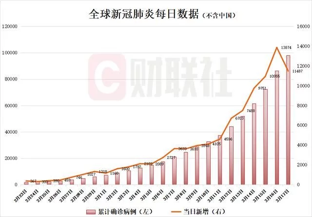 | 「3月17日」除中国外新增确诊病例下滑至11487例 | |||