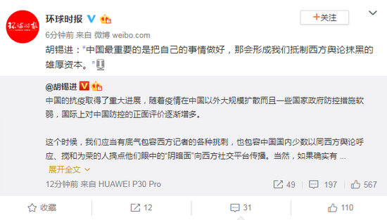 | 胡锡进:中国最重要的是把自己的事情做好,那会形成我们抵制西方舆论抹黑的雄厚资本 | |||