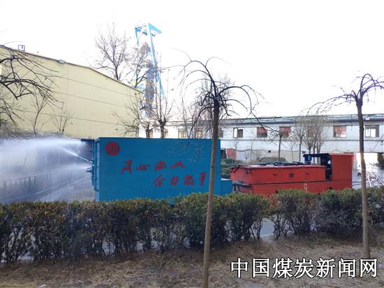 【本网讯】阳煤集团二矿注重打造绿色工业厂区,不断加大管控力度,责任到人,严格考核,多措并举改善工作环境,人人参与打造绿色矿山。图为职工利用自制洒水车正在井口工业广场进行洒水消尘作业。
