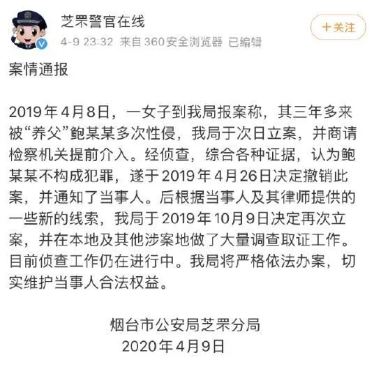 一个女孩被生母轻易送给别人抚养。 她说自己刚满14周岁就遭到性侵。 身患重度抑郁、应激障碍,多次尝试自杀。 报警,立案、销案、再立案……到今天,调查结果杳无音讯。 从昨晚开始,富贵就被“上市公司高管性侵养女4年”事件接连震惊。 富贵先给大家捋顺一下发生了什么。 根据南风窗的报道,2015年12月31日刚刚跨年,女孩星星(多家媒体也称其化名小兰)也正式年满14周岁,就遭到养父鲍某的性侵。 而星星有亲生母亲,被送去跟鲍某生活的原因,透着不可思议的emm…… 四年的噩梦开始了。 星星被鲍某控制着共同生活的日子里,被强迫看未成年人不雅视频,一次次遭受性虐待。鲍某甚至对星星洗脑,“我们做的事是很正常的,电影里大家都这么做”“你不能把我们的秘密说出去,说出去你就不干净了,所有人都会讨厌你。” (图via南风窗) 看着女孩曝光的照片,富贵都能感到恐怖,那是一种比《熔炉》中校长在厕所偷窥更瘆人的感觉。 (图via南风窗 鲍某正准备往星星身上贴胶带) 年幼的小姑娘不知道发生了什么,当她把自己的遭遇告诉别人时,才知道她被强暴了。经过医院检查,此时的星星已经患有重度抑郁症、重度创伤后应激、重度焦虑症,而且阴道损伤发炎。 2019年4月,鲍某再次殴打她时,小女孩选择报警,很快立案了,但18天后这起案件被撤销。 但是女孩没有放弃四处求助,在烟台检察院的监督之下,警方重新立案。 (图via南风窗) 4月9号烟台警方给出的回应也印证了报道中的内容,目前一直在侦查。 立案了、侦查了,可是至今已经6个月过去,没有任何结果。任谁看了都会心生疑惑:包庇? 讲真,富贵起初也是这么想的。 毕竟鲍某大有来头。 他不仅是山东杰瑞集团副总裁兼首席法务官,还是中兴通讯独立非执行董事。上市企业高管的身份背后是有20年从业经验的资深律师,有中国律师资格与美国最高联邦法院出庭律师资格。 说是权威人士也不过分,更有些嘲讽意味的是,这位被指控有恋童癖性侵女孩的大律师,竟然发表过这样的文章 关于人性之恶,富贵向来不惮以最大的恶意揣测。 可案件判决要讲究证据,涉及未成年人的性侵案更是如此。 这也正是星星面临的最大挑战。 大家注意烟台警方第二次立案通知中的那句话:我局认为有犯罪事实发生。 可就是拿鲍某没有任何办法。 鲍某自己是不会承认的,面对指控他的回应很直接:纯属捏造,为自证清白,还会追究她诬告陷害诽谤的责任。 星星和鲍某谁在说谎,得靠证据说话。 星星自己受访时也说过,第一次被性侵时已经年满14周岁。要知道按照我国的法律,与14周岁以上的女性双方自愿发生性关系,不构成强奸。要证明鲍某有罪,先需证明双方不是自愿发生关系,若是强迫则需要在女孩身上发现伤痕,还得证明这些伤痕与鲍某有关。 取证难度可想而知。 根据星星的描述,第一次被侵害的时候她太小了。就当下未成年人性教育的现状,有多少人孩子知道遭受侵害该主动到医院验伤保存证据?这么小的孩子,恐怕连人身自由都没有。 想到这些,富贵都感到非常无奈,这大概率是第一次立案之后再撤销的原因。 如今再次立案,最终的结果会怎样?讲真,富贵并不乐观。 从昨晚至今,有一段电话录音引起巨大争议。星星在居住地南京报警后,南京警方电话质问烟台警方,于是有了下面的对话 星星:我是在烟台那边遭受性侵的。 烟台:公安局和检察院已经联合给你下发文件,别老是强暴强暴的。 南京:案件到哪一步,该告知她啊? 烟台:已经告知她了。 南京:告知她什么了?对方到底是怎么处理的? 烟台:办案民警已经处理并告知她了。 南京:办案民警能不能帮我联系一下? 烟台:他不在单位。 南京:不在单位就联系不到了?你们到底是不是派出所? 自动播放 ![]() 富贵听完只有气愤。 烟台警方没有向南京方面同步信息合理吗? 富贵就这事儿咨询了哥迷中的警务人员,得知的信息并不是大家想象的那么简单。起码不是简单骂一句烟台警方不作为可以解释的。 任何警务人员在案情披露上,不是主办民警对某个案件不了解是正常的,因为有保密原则,禁止非主办警员打听别人办理的案件。即便是主办民警,也不能在电话中透露案情进展,协作单位想知道详情,可以发函。案件信息的答复还要经过层层审核,政治部,宣传口,甚至要政法委签字才能公布。 也正是基于上面的考虑,在电话沟通中不太可能暴露太多案情。 难道星星的案件就一直这么拖下去,没有一个结果? 富贵最不愿意看到的结果就是不了了之。 追踪寻迹将坏人绳之以法,是警察的事,作为普通人,我们能做的似乎只有保持关注。 好在关心这件事的人越来越多。 目前鲍某的高管职务已经被解除,在西南政法大学商学院的研究员身份也被解聘。 关注这件事的层级也越来越高。 遭受性侵而要讨回公道,从来不是一件容易的事情,她们面前有千沟万壑阻挡着。星星在接受治疗时,有同样遭遇的女孩跟她说:姐姐们欠你的,因为我们不够勇敢。 富贵为星星期待着一个公道。 信息来源 《涉嫌性侵未成年女儿三年,揭开这位总裁父亲的“画皮”》南风窗 《南京警方对话烟台:望告知被性侵者案情》澎湃新闻