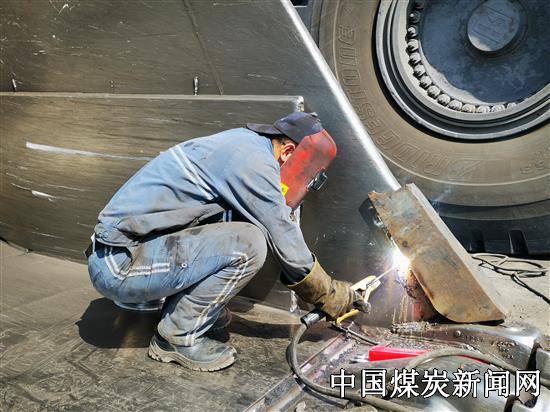 【本网讯】近期,准能集团哈尔乌素设备维修中心强化设备检修管理,严格执行标准作业流程,充分利用设备点检、保养时间消除设备隐患,降低停机时间,提升设备出动率。图为职工正在焊修前装机护角。