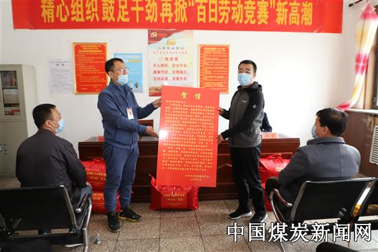 【本网讯】一季度,同煤集团云冈矿超额完成煤炭产量、掘进进尺、成本管理等任务指标,顺利实现首季“开门红”。4月17日,云冈矿党委副书记、工会主席王永慧代表矿劳动竞赛委员会,对综采一队、机掘一队等在一季度表现优异的单位进行表彰,为他们送上锦旗、贺信及纪念品,对优胜单位全体员工在一季度的辛勤付出表示感谢,并鼓励全矿员工以他们为榜样,在二季度工作中积极进取,再创佳绩。