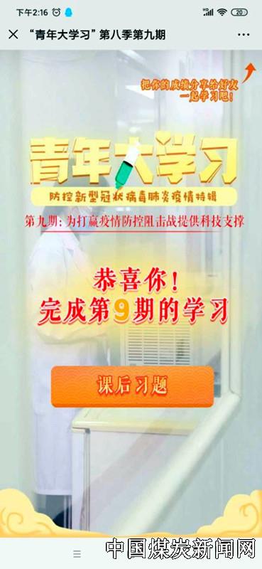 【本网讯】陕西铜川矿务局华远项目部供应管理中心党委十分注重复工复产后青年党团员的疫情防控工作及学习培训教育工作。持续聚焦复工后学习培训,组织全体党团员青年积极参与网上主题团课学习,保持“青年大学习”的参与度,不断加强思想引领,强化党团员青年充“电”加“油”,提升个人综合素养,增强工作本领,为本单位青年创造浓厚的学习工作氛围。真正做到学习“充电”强本领,防“疫”复工两不误。![]() ![]()