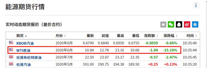 其中,受益于经济重启的股票在周一领涨。米高梅假日(MGM Resorts)和嘉年华(Carnival)均上涨8%以上。盖璞(Gap)和柯尔百货(Kohl’s)分别上涨9.9%和12.7%。 美国多州相继宣布经济活动重启,包括阿拉斯加、乔治亚州、南卡罗来纳州、田纳西州和得克萨斯州在内的各州都开始允许餐馆和其他机构为顾客提供服务。 纽约州州长科莫表示,纽约计划分阶段重新开放经济。他表示,第一阶段将涉及到纽约的建筑业和制造业。作为第二阶段的一部分,企业将需要重新开放设计计划,其中包括安全社交距离的做法和个人防护设备的使用。科莫在26日时还指出,纽约州与新冠病毒相关的住院人数已连续14天下降,纽约的新增死亡病例创下近一个月来的新低。 油价方面,周一油价的跌势使股票涨势受到抑制。WTI原油6月期货合约大跌24.56%,跌至每桶12.78美元,而WTI原油7月合约的价格也受影响下跌超过14%,报18.18美元/桶。截至发稿,WTI原油6月期货跌破11美元/桶,报10.84美元,跌幅15.18%。