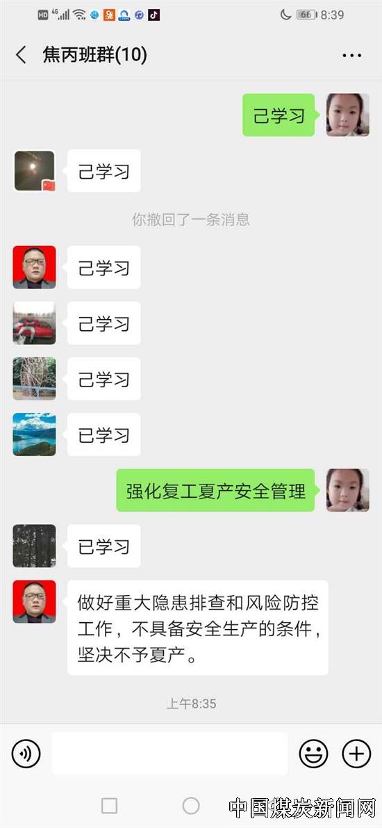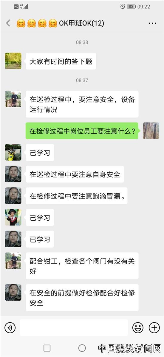 ![]() “@所有人,由于受到疫情影响,为避免人员聚集,公司决定利用各车间工作微信群,开展周五安全环保思想教育学习。请各车间将安全学习资料发到本车间工作微信群,组织员工们学习……”4月2日,在江西省投资集团丰矿集团新高焦化周五安全环保思想教育学习群里发布了一则这样的通知。 ![]() ![]() 为增强互动性,提高安全环保思想教育学习的效率和质量,该公司围绕安全环保生产出主意想办法,采用微信群自学的安全形式,激活员工常态化的安全环保思想教育学习。组织炼焦、备煤、化产三个车间充分利用工作微信群,建立起安全环保思想教育学习小课堂。将公司有关制度、会议精神、安全通报、安全环保生产知识和各类事故警示案例等各类信息转发到工作微信群供员工学习,让员工第一时间了解公司各部门安全动态并讨论交流、互动答题;收集各部门安全生产方面的意见和建议,形成了全面覆盖的安全工作“微”格局。 “利用微信群传播安全环保生产信息,实现安全教育24小时‘亲密’、‘微距’接触,使安全环保思想教育时刻保持着鲜活的互动性、趣味性和时代气息。”该公司备煤车间主任甘海平说道。 ![]() “现如今微信的使用越来越流行,我们也喜欢上了‘指尖上的安全学习’,这种方式很‘时尚’。”该公司化产车间员工熊玉龙这样说道,“在家休息我也会时常点开微信群,学习车间的安全环保思想学习内容,参与互动答题,与大家交流安全事故案例的心得。这样打破了集中学习在时间和地点上的限制,使我们可以灵活的掌握学习时间效果。”