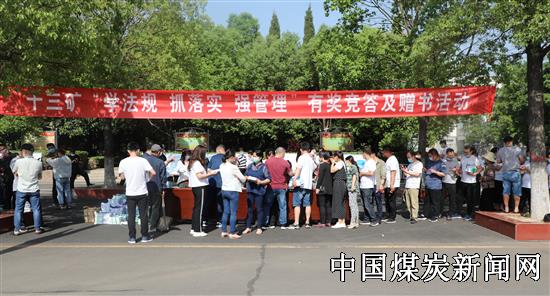 【本网讯】为扎实开展“学法规、抓落实、强管理”活动,在全矿范围内营造浓厚的普法、学法、守法的氛围。5月22日上午,平煤股份十三矿在2号楼门前,组织开展 “学法规、抓落实、强管理”有奖竞答及赠书活动。
