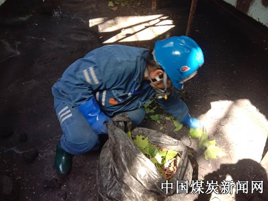 该中心大力宣传“煤质就是市场、煤质就是生存”的理念,教育广大干部职工认清形势,正确处理好产量与质量关系,坚决扭转重产量轻质量的思想倾向,不断加大管控力度,细化考核制度,与经济挂钩,实行煤质管控问责制和质量事故追查制度,对质量事故积极开展质量分析活动,实行一事故一分析,不光将责任细化到各相关管理人员,还具体细化到每个班组的每一个人身上,发生因水煤或杂物影响煤质的,直接将责任倒逼回管控不严的班组长和岗位工身上,视情节严重程度,对责任人进行处罚,逐步形成齐抓共管的浓厚氛围,不断提高商品煤综合煤质,积极发挥洗选提质增效作用,有效确保效益最大化。图为清理煤炭中的落叶。