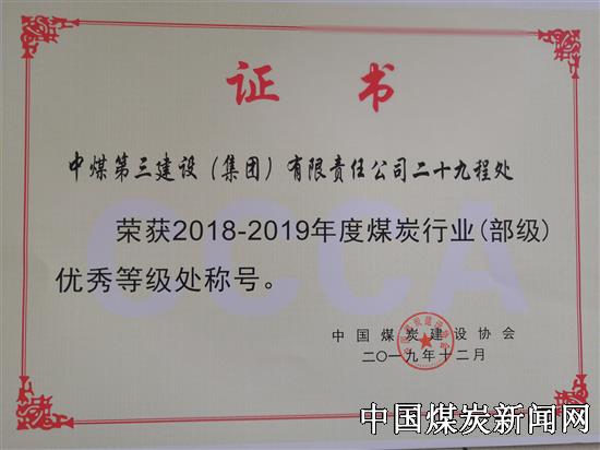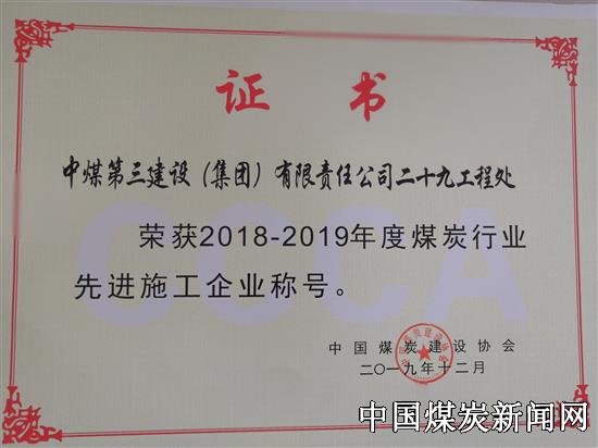 | 中煤三建二十九处喜获煤炭建设行业先进企业等多项表彰 | |||