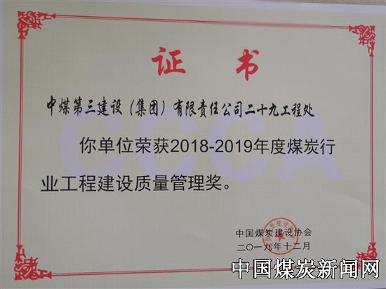 【本网讯】 日前,从中国煤炭建设协会传来消息,中煤三建二十九工程处依靠较强的综合实力和出色的施工业绩,获得多项荣誉。