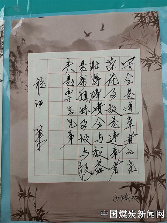 【本网讯】6月12日,古叙煤电有限公司石屏一矿工会在井口开展安全书画展活动,活动紧紧围绕六月安全生产月及“学法规、强管理、抓落实”活动,共展出作品50余幅,吸引了上下班职工驻足观看。