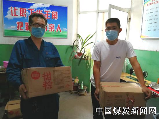 6月22日,冀中能源峰峰集团电业分公司五矿电厂工会在端午节前夕为职工采购了粽子,带着节日的祝福,送到了职工手中,职工深深体会到了“娘家人”的关心。图为职工正在领取粽子。