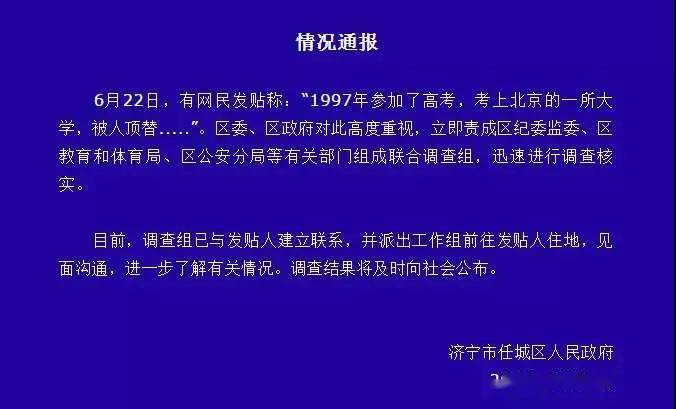 ▲官方通报 与陈春秀一样,苟晶同样出身于贫寒之家。她成绩优异,就读于当地重点高中,正常水平考上大学没有任何问题。而即便第一年没有“考上”,她甚至顶着家庭经济压力考了第二年。这种改变命运的愿望是如此强烈。 但她不会想到,自己的两次高考,可能都有一双自己无论如何都看不见的手,在操纵着她的命运——说这些的前提,是她所述的“两次被冒名顶替”属实。而这种操纵,对一个考生的人生、一个家庭的命运,可能是毁灭性的。 二十多年过去,苟晶通过艰苦打拼,也过上了体面的生活,用她自己的说法,“我奋斗了23年,才在命运里扳回一局”。她已经不太在意被强行改变轨迹的人生,之所以坚持举报,也并不是想要赔偿,而只是因为“想纠错”,求一个真相。 受害者可以不“介怀”,操纵者却不能无悔意。如果邱老师做了亏心事,这个时候,他就应该为自己的错误真诚忏悔,也应该坦然面对法律的依法裁决。企图以私下接触乃至施压解决问题,本质上仍是没有正视那个自己亲手导致的罪恶悲剧。 事实上,按苟晶和媒体的说法,自事发以来,邱老师一方一直秉持着同样的“私了逻辑”:他此前曾尝试带着钱物去苟晶老家请求和解,但被苟晶母亲拒绝。而据苟晶描述,他临走的时候特别指出苟晶妹妹孩子今年中考,这被其解读为是以孩子升学为筹码逼迫自己作罢;后续的跨省寻见,根据苟晶同事的说法,“他(班主任)骗我们说他是苟晶的亲戚,说苟晶和他女儿有点矛盾,需要解决一下。” 可以看到,邱老师的种种行为,机巧背后充斥着痕迹明显的算计与投机,这种算计与投机表现,与当初的高考操纵行为一以贯之。 这不该是一个没名没姓的年代,那些高考中的冤屈,无疑应该被尽量打捞与洗涮。从陈春秀,到王丽丽,再到苟晶,属于她们的公正都不能少。眼下当地还在调查此事,苟晶到底有没有被顶替,如果有,是怎么被顶替的,什么人参与了这次顶替,次年复读高考再度落榜是不是再次被顶替……这些都需要一一查清,给当事者一个交代。 而无论如何,那些曾经的顶替上大学“操盘手”,都该向受害者真诚地说声“对不起”,并为之担责。于Ta们那个已比泰山还重的人生际遇而言,这已是“轻于鸿毛”。 □王言虎(媒体人)