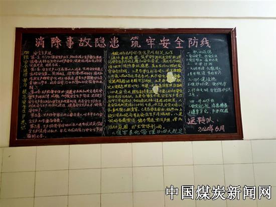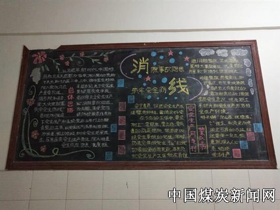 各基层党支部在职工会议室墙上精心绘制黑板报,以图文并茂的形式向职工宣传“消除事故隐患,筑牢安全防线”活动主题,宣传矿井“六月安全生产月”活动的目标及活动安排;宣传安全生产法律法规;宣传“生命至上,安全发展”“安全是家庭幸福的保证”等安全理念,动员全体员工以实际行动参与到“六月安全生产月”活动中,表达了基层干部职工与矿党政同心同德,构建安全发展稳定局面的信心和决心,成为基层单位安全宣传的有效载体。