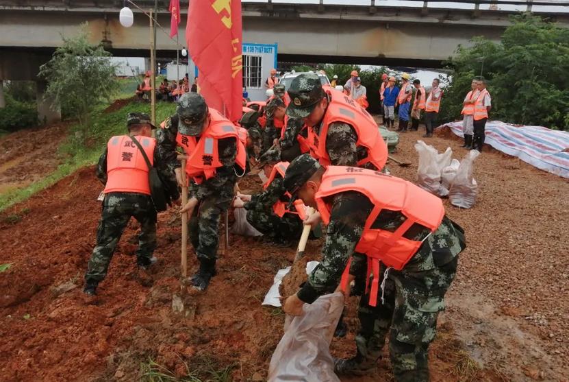 空降兵驻广水某旅 7月9日凌晨2时20分,空降兵驻广水某旅紧急出动驰援荆州。从人员编组到路线规划,从物资装载到集结待命,任务官兵迅速完成一切行动准备,5时53分,救援分队已安全火速抵达现场,展开救援行动。 (王彬) 武警武汉支队 7月8日上午11时30分,武汉市通顺河南岸河水上涨过快,下游村民近万亩农田及厂房等面临威胁。武警武汉支队组织兵力第一时间奔赴任务区,对堤坝进行加固。截至晚上19时,部队连续奋战近7个小时,装填沙袋2500余个,对任务区域200米长堤坝筑起了高约1.5米左右的子堤,有效降低了漫堤风险。 (张志伟 周亚东 张海涛)