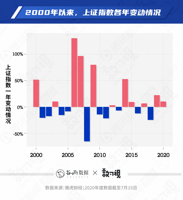 在90后们忙着长大的这20多年里,70后和80后们忙着赚钱、安家,也有不少人在股票市场的几轮牛市中,尝到了发财的滋味。 过去的机会没赶上,未来的机会拼命抓。 新一波股市上扬,让不少90后蠢蠢欲动,有些人甚至摩拳擦掌开始跑步进场,开了人生第一个股票账户。 出品丨腾讯新闻谷雨工作室 第一批90后已经到了而立之年。如果按照22岁大学本科毕业来算,1998年出生的90后正准备踏入社会,而最年长的90后已在职场上摸爬滚打了8年,是一个完整意义上的"社会人"了。 无论是初出茅庐,还是奋斗几年有了一定的财富积累,想发财的心,都是一样的。 在90后们忙着长大的这20多年里,70后和80后们忙着赚钱、安家,也有不少人在股票市场的几轮牛市中,尝到了发财的滋味。 等90后终于长大成人,才发现,过去这些年里发财的机会,自己似乎一个都没赶上趟。 到了该买房的年纪却没有买房的钱 这几年,"只租房,不买房"的生活方式在90后中大受欢迎。但随着年龄渐长,越来越多90后也发现,房子才是安全感的来源。汇丰银行的调查显示,中国年轻人的住房拥有率在全球范围内都是最高的。 和60后、70后相比,90后显然没有父辈们的好运,能够依靠自己买上房子。网易房产的调查数据显示,70后置业时父母只需帮助28%,80后需要父母帮助45%,而到了90后,这个数字已经上升到了61%。 从1998年中国商品房制度改革开始,住宅产业逐渐成为国民经济的支柱产业,全国房屋价格也一路水涨船高。 从全国范围来看,住宅商品房价格从2000年的每平米2000元上涨到2018年的每平米8000多元。 而年轻人渴望安家的一二线城市,涨幅更是远高于此。2000年,北京市住宅商品房价格为每平米4557元,而到了2018年,均价已经达到了37420元,是2000年的8倍左右。 70后的沪漂林云2000年初来到上海,攒了几年的工资后,于2007年在上海南汇区的周浦镇买了一套102平米的房,当时的价格只要51万,林云贷了30多万的款,凭自己工资付首付。2009年,她以169万的价格卖出,净赚100多万。 凭着这套房赚到的钱,林云陆续在浦东和13号线沿线买了4套房,直到后来上海开始严控楼市,她才慢慢退出。但是几进几出后,她的个人财富已经达到了一个可观的数字。 而对于如今的90后而言,工资的增长已赶不上房价上涨的速度,想凭借自己的能力买房,可能性已越来越小。一套房往往要掏空一个甚至两个家庭的口袋。 掏空口袋买房后也没赶上房价大涨 对于大多数人来说,房子是刚需而非投资品。在最近20年里,房子成为了增值速度最快的资产。 2000年以来,中国房价经历了多轮大涨。最近的一轮大涨起于2015年。2015年,房地产调控政策放松,中央多部委发布通知,将二套房最低首付比例调整为40%,个人住房转让免征营业税的期限也由超过5年下调到2年。 在此新政刺激下,深圳房价开始暴涨,并拉动了一线城市和全国的楼市,两年的时间,不少城市的房价涨幅超过30%。 但是2017年以后,一线城市的房价普遍陷入了横盘。 按年龄算,中国年轻人首次买房的平均年龄是27岁。也就是说,2017年左右,90出生的购房者开始买入了人生中的首套房子。 贝壳网和网易房产的数据显示,2017年开始,90后的买房比例第一次超过70后,并在2019年成为购房的主力人群之一。 也就是说,当90后好不容易集全家之力、掏空口袋,陆续在一二线城市买了房,房子增值的幅度却越来越小了。他们以历史高价买入了房子,却没有和70后、80后一样享受到房产的快速增值。至少到目前,情况是这样的。 而回顾90后成长的20多年,错过的不只是房价。 过去几次大牛市90后还是个"孩子" 想要在股市上挣钱,入场时机是最重要的因素之一。 如果以上证指数一年内的变动幅度来判断当年投资者在股市中的盈亏情况,那么在过去20年里,盈利的年份占到一半,但真正想要"赚大钱",还是得在牛市上。 市场普遍认为,在过去20年的时间里,A股前后经历了四轮牛市。 在这些年份中,收益率最高的三年分别是2006年、2007年和2009年。在上述任何一年的年初进入股市,炒股的收益率都可能超过80%。特别是2006年和2007年两年里,上证指数从1000点左右的低位一路狂飙到5000多点。 但这几次机会,似乎都和90后无缘。 2000-2009年,大部分90后还在象牙塔中,股市牛不牛,几乎与他们无关。 2012年,第一批90后进入职场,逐步实现经济独立。若在2014-2015年进场,或许可以小赚一笔。 90后的陈大梁在2013年底入场,初始资金5000元,后面慢慢追加到5万元。到2015年4月,他的账户上已经有了10多万元。小钱翻倍,也只是小打小闹。 2015年之后,股市整体遇冷,工作几年的90后,虽然投资的底气更足,如果赶在2018年入场,不仅发财梦难实现,辛苦攒的本金也可能血亏。 据《腾讯证券》的一份报告显示,当年股市中有八成的股民是亏钱的。 90后炒股:着急,缺少知识与耐心 2020年6月起,短短1个多月的时间,上证指数已经涨了500多点,涨幅将近20%。7月7日,沪深两市成交额达到1.74万亿元,创下2015年6月16日以来新高。直到7月13日,沪深两市的成交额已经连续6个交易日突破1.5万亿元。 新一波股市上扬,让不少90后蠢蠢欲动,有些人甚至摩拳擦掌开始跑步进场,开了人生第一个股票账户。 国泰君安的月度数据显示,6月,国泰君安线上开户环比上升三成以上,其中90后开户比例最高,达到30%。90后俨然成为这轮行情的主力军。 一家券商客户经理在接受媒体采访时表示:"这几年只要行情变好,都会