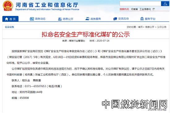 经资料审查和现场考核,辉县市龙田煤业有限公司程村矿井达到二级安全生产标准化标准。7月14日,在河南省工业和信息化厅官网进行公示公告。