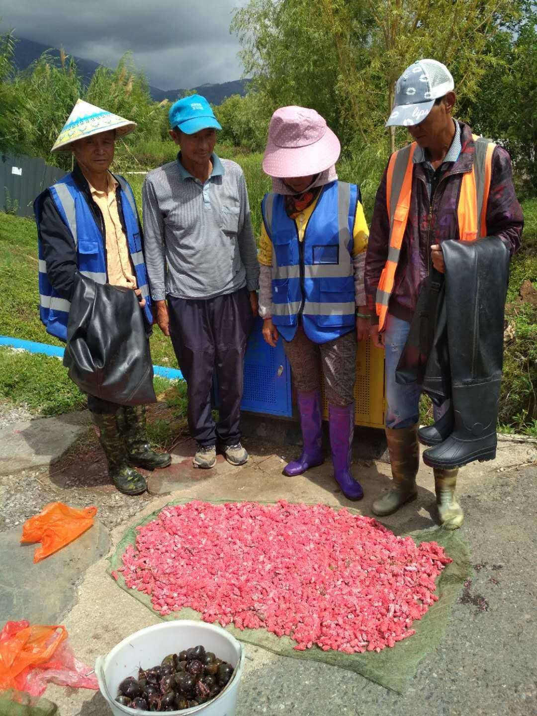 当地人清除福寿螺卵和福寿螺。上关镇洱海管理所供图 福寿螺寄生虫多 当地人不食用 为彻底清除福寿螺,确保生态系统安全,大理市发布福寿螺防控通告,清除范围包括洱海湖岸沿线,流域内水田、湿地、生态调蓄带、河道。 是否能靠“吃”解决福寿螺这一外来物种?记者了解到,食用未充分加热的福寿螺,会引起广州管圆线虫等寄生虫感染,产生头痛、发热、颈部僵硬等症状,严重者可致痴呆,甚至死亡。马思明说,因为福寿螺的寄生虫非常多,当地人并不食用它。“由于有寄生虫,我们也会提醒村民,在海里清除要做好防护、戴好手套。” 马思明称,为了消除对洱海的环境影响,目前采取人工清除的方式摘除福寿螺卵块,不会使用化学药剂。杨君兴认为,人工清除看似是“笨办法”,但是可以精准清除,不会伤及其他物种。 难以一次性清除 需长期关注 清除福寿螺是一项长期性的行动,此次人工清除行动将从即日开启,2020年11月底前全面完成第一次清除工作。 记者注意到,去年云南发布《云南省外来入侵物种名录(2019版)》(以下简称《名录》),是我国首个省级外来入侵物种名录。对此,杨君兴表示,很多物种最早入侵沿海地区,不断入侵至云南,一些物种开始引进时是无意的,比如沿海很多地方吃螺。“如果这种物种在当地大量繁殖,很难一次性将种群彻底清除干净,需要长年进行关注。” 据悉,根据《云南省大理白族自治州洱海保护管理条例》,一级保护区、二级保护区内禁止放生或丢弃非本地水生物种,一经发现,相关部门将依法给予相应处罚。