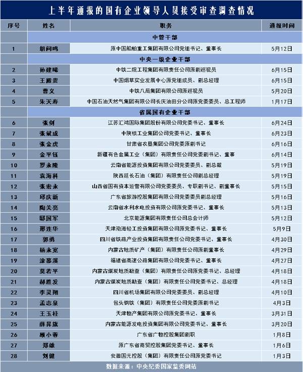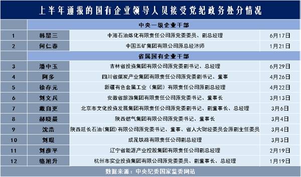 | 上半年至少40名国企领导被公开通报,其中12人受处分 | |||