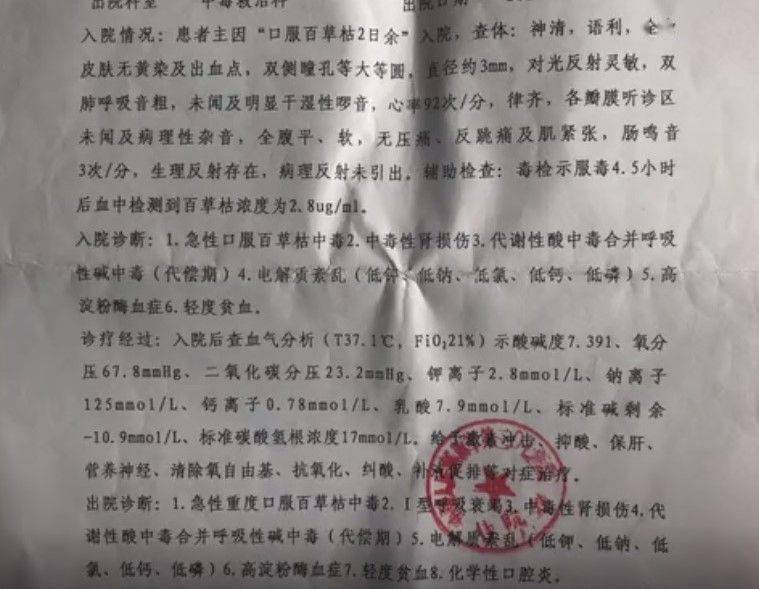 医院诊断记录显示,张某某急性口服百草枯中毒。 医院入院诊断显示,张某某有急性口服百草枯中毒、中毒性肾损伤、代谢性酸中毒合并呼吸性碱中毒、电解质紊乱和高淀粉酶血症等症状。岳亚某称,7月7日23时许,医生通知他张某某病危,次日3时许,张某某去世。 岳亚某介绍,他和张某某曾于2013年离婚,后来于2019年复婚。张某某在上述视频中称,她被岳某生性侵的经历发生在和岳亚某离婚期间。