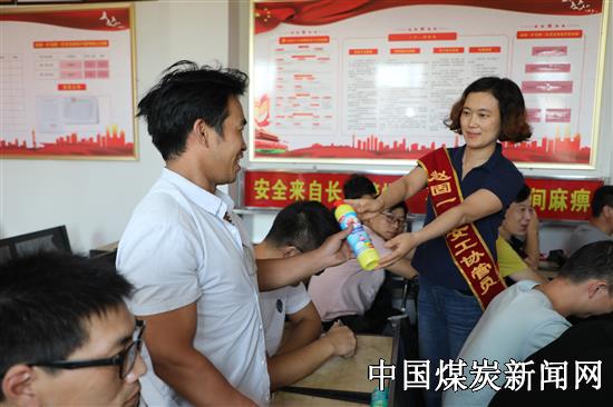 为助力矿井打好后四个月安全生产攻坚战,9月8日至9日,河南能源焦煤集团赵固一矿工会组织女工协管员到全矿生产一线单位班前会开展了安全红线知识有奖竞答活动,以寓教于乐的形式,提高广大职工学习安全管理红线的积极性、主动性,营造了浓厚的安全生产氛围。图为活动现场。