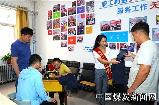 河南能源焦煤集团赵固一矿工会女工委以“情系矿工、确保安全”为主题,开展了井口“送温暖”、亲情帮扶、协管进区队等丰富多彩的活动,为矿井的安全生产筑牢防线。图为9月14日,该矿女工协管员们在职工服务站为员工缝补工作服。