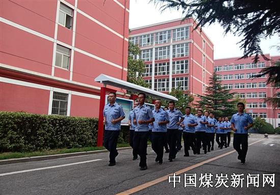 为持续强化矿区治安管理能力,提高护卫大队处理应急水平,山能集团唐口煤业有限公司护卫大队近日开展秋冬季“内强素质、外树形象”练兵活动,图为护卫队员进行早操训练。