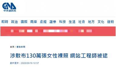 据台湾“中央社”9月18日报道,高雄市警察局刑警大队18日宣布逮捕一名网络工程师,涉嫌在网上散布130万张女性裸照,其中未成年人照片约上万张,受害者遍布全台。