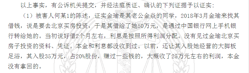 值得一提的是,金瑜还对其同学的妻子“下手”。2018年3月26日,被告人金瑜谎称投资房地产,骗得被害人何某1人民币50万元。