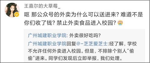 | 学校派保安"抓外卖"后,在官微开启了"对线模式"… | |||