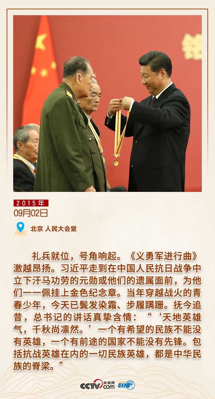 “天地英雄气,千秋尚凛然”“我们一定要铭记烈士们的遗愿,永志不忘他们为之流血牺牲的伟大理想”“包括抗战英雄在内的一切民族英雄,都是中华民族的脊梁,他们的事迹和精神都是激励我们前行的强大力量”……