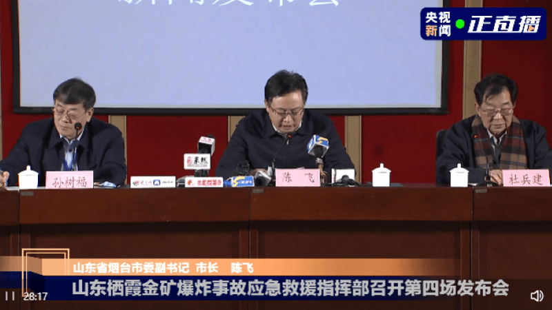 1月18日,山东栖霞五彩龙金矿爆炸事故应急救援指挥部第四次发布会上,有媒体提及网上一度流传井下22人全部获救的消息。对此,指挥部副总指挥、烟台市委副书记、市长陈飞回应称,这一说法系误读,目前仍有10人处于失联之中。