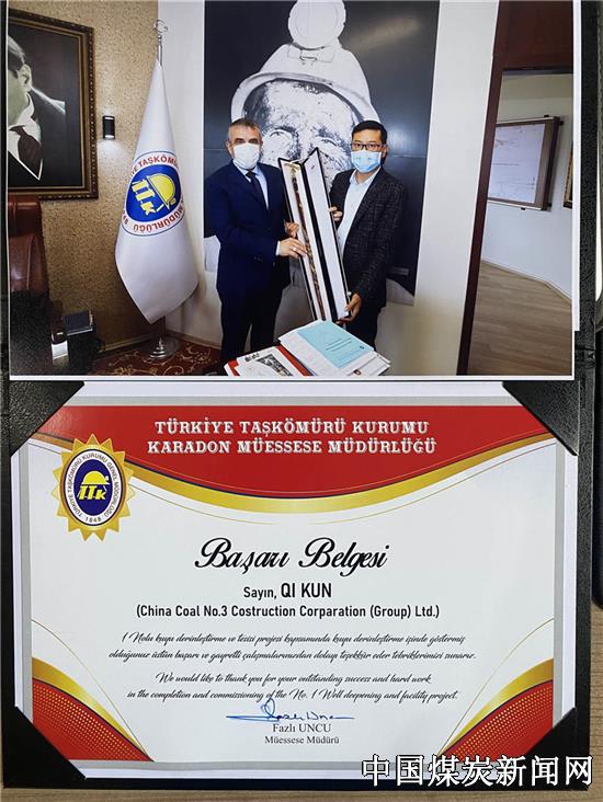 【本网讯】日前,中煤七十一处土耳其卡拉硐项目部施工的卡拉硐煤矿1#井井筒修复延伸、箕斗提升系统供货安装、-360米水平挡水大坝EPC总承包工程完成验收交付,喜赢甲方贺信。