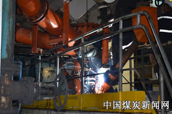 此时已经是华灯初上,但洗煤人却身处检修战场,各检修小组各自为战,以饱满的精神,昂扬的斗志始终投入在紧张的大检修之中,现场一片热火朝天的场景。301机头下溜槽处正在对302刮板机冲击点进行底板更换,透过观察口,只见温柔的灯光下,人影晃动,焊花飞溅,电焊的“刺刺”声引起了我的注意,我使劲地观察下面焊接人员的神态,时有时无的焊花、若隐若现的身影浮现于眼前,当我想用相机记录那感人的瞬间时,挡板遮掩、灯光昏暗等原因,只能将相机伸入溜槽口拍摄了数遍,精选了一两张照片。 此时已是夜阑人静,305浅槽处正在对平段底板进行更换,只见有各种姿势焊接的、有铆螺丝的、有吊车作业的、……,他们忙而不乱、累而不疲。走下楼梯,只见生产岗位工有的手持水管在冲洗淤泥,黑水飞溅满身污泥,却丝毫未动继续冲洗,有的正在认真擦拭设备。