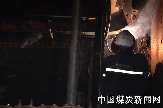 此时已是午夜时分,306到901溜槽中,只见有人一袭工装,满身油污,弯腰缩脚进入溜槽、脚蹬绳梯、身系安全带,正在焊接作业,此情此景下,我看着那溜槽中只有两条长腿的身影,内心五味杂陈,眼角湿润。来到筛分车间204破碎机处,只见检修人员正在焊接齿头,弧光闪烁、焊花飞溅,伴着“刺刺”声响,我看到他们脸庞上流过的汗水纹路,衣服上残留的汗水印渍,我突然感到自己的语言在他们可贵的奉献精神前面是那么的苍白,无法用语言形容此时的心情,更无法用语言来形容此时眼前的一幕幕。
