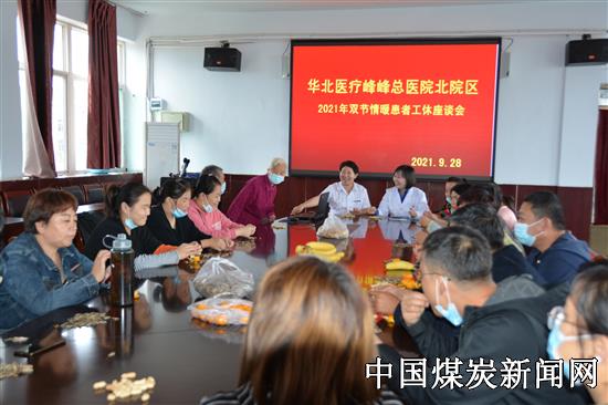 【本网讯】为切实加强医院行风建设,不断提高医疗服务质量,广泛收集意见建议,扎实开展好优质服务常态化工作。9月28日下午,华北医疗集团峰峰总医院北院区召开2021年迎国庆情暖患者工休座谈会。优服办、工会负责人和来自各病区的住院患者及家属代表30余人参加了会议。