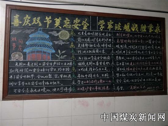 今年以来,石屏一矿党委进一步加强基层党支部宣传阵地建设,切实发挥宣传栏、黑板报等宣传载体的作用,紧紧围绕安全生产各阶段重点开展宣传工作。在中秋国庆之际,按照矿党委安排 ,各基层党支部在努力营造欢迎祥和的中秋国庆节日氛围的同时,紧紧围绕“学法规、抓落实、强管理”专项活动,以及公司《关于贯彻学习安全生产法等法规制度的通知》要求,将《中华人民共和国安全生产法》《刑法修正案(十一)》《煤矿重大事故隐患判定标准》、《煤矿安全生产违法违规行为和处理处罚规范描述》等安全生产法规制度的宣传作为本期黑板报宣传的重要内容,通过图文并茂的形式,嘱咐员工“双节”莫忘安全,引导基层员工学法规、懂标准、强意识、守规章,全力保安全,为实现矿井四季度安全生产目标,保障家庭团圆幸福共同努力。