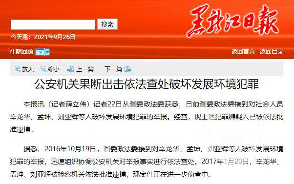 欲拿回股权反被诬告羁押37天 2016年3月,赵树斌联系辛龙华协商,欲结清欠款,希望其归还股权,遭到拒绝。此后,在辛龙华的诬告之下,赵树斌被警方以涉嫌诈骗和非法吸收公众存款抓捕,被羁押37天后释放。 而这次羁押的背后,离不开时任哈尔滨市公安局阿城区分局副局长束玮的能量。 2013年,束玮异地升迁为阿城区公安局副局长,专掌刑侦与经侦大权。据知情人透露,在案件侦办过程中,一部存有辛龙华和他的保护伞之间通话录音的手机,作为重要证据,被送到黑龙江政法部门。 知情人告诉记者,辛龙华平时虽然和政法官员称兄道弟,但对谁都不信任,和政府官员通话,每次都会录音,结果这部手机里的录音成了认定辛龙华有哪些保护伞的重要线索和证据。在录音中就包括辛龙华与束玮构陷赵树斌的内容。 据悉,2016年3月赵树斌找到辛龙华协商遭到拒绝。同年5月,辛龙华向哈尔滨市公安局阿城分局报案称,赵树斌涉嫌诈骗犯罪和非法吸收公众存款。在警方调查后,因控告不实未予立案。 记者拿到的通话录音显示,日期为2016年8月25日的通话录音中,束玮对辛龙华以“哥们”相称,辛龙华问:“束局,赵树斌那块,怎么那什么了(放了)?”束玮回答:“这两天,我得上区里汇个报!打个招呼,完了,该怎么办怎么办呗。” 2016年9月2日辛龙华在电话中问束玮:“那个事,咱局里现在有没有啥说法?”束玮回答:“就这两天给他收回来,你别吱声!” 在此次通话后三天,赵树斌被抓捕,此后被羁押37天。2016年10月12日,哈尔滨市检察院明确作出不批捕决定。赵树斌被释放。 获释后,赵树斌报案称辛龙华涉嫌诈骗。2016年12月,辛龙华被抓。2020年11月20日,辛龙华因骗取贷款罪、高利转贷罪、诈骗罪等数罪并罚,被判处无期徒刑。 ▲2017年1月20日,辛龙华等人因破坏发展环境被批捕。图片来源/报道截图