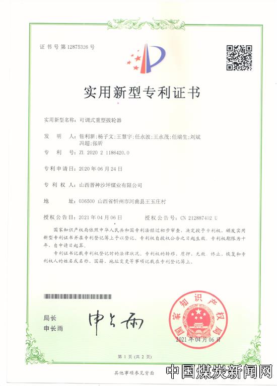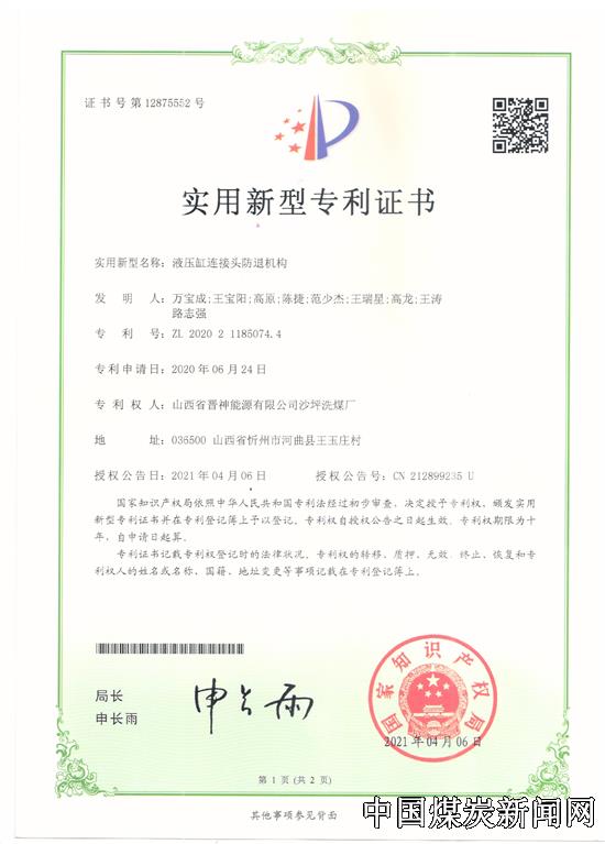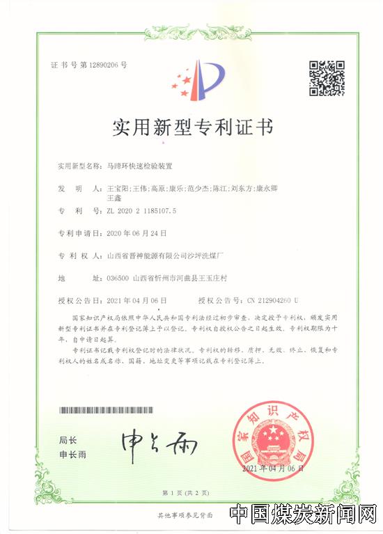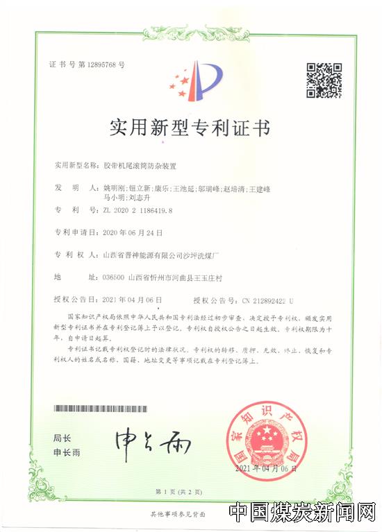 【本网讯】近日,晋能控股煤业集团晋神公司沙坪洗煤厂液压缸连接头防退机构设计、马蹄环快速检验装置、可调式重型拔轮器、胶带机尾滚筒防杂装置四项获得国家实用新型专利,这是该厂在知识产权体系管理工作的又一个重要成果,更为该厂的科技创新工作再次添上了浓墨重彩的一笔。截止目前,该厂已获国家实用新型专利十一项。