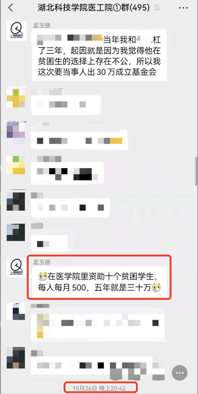 孟玉朋在校友微信群里解释索要30万元经济及精神损失费的原因。 受访者 供图 针对叶华山的处理,日前湖北科技学院党委宣传部向澎湃新闻回应表示,“对于此事学校已经有统一的处理结果,以上报的文件为准。”至于校方是否还追究专利第二申报发明人郑敏的责任,对方表示,“这个我回答不了,”并称,“如果孟玉朋对处理结果不满,可以通过正规渠道进一步反映。”
