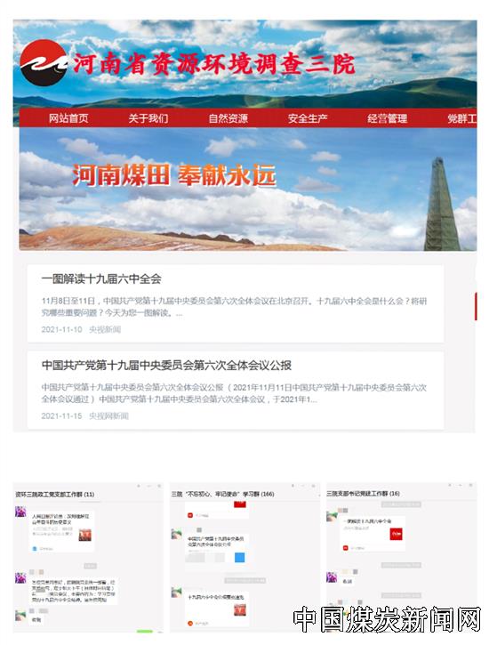 河南省资源环境调查三院通过广泛开展专题学习研讨,结合生产工作实际,通过“线上”资料推送+“线下”交流心得,机关部门“集中式”+野外实体“自主式”的形式,在全院上下掀起学习党的十九届六中全会精神热潮。