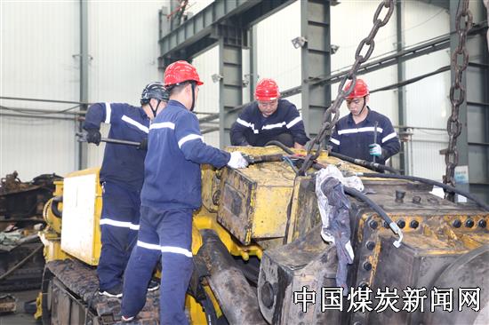 【本网讯】河南能源焦煤集团赵固一矿把学习贯彻十九届六中全会精神与做好成本管控工作相结合,加强材料管理,加大修旧利废力度,努力节支降耗,提高矿井经济效益,打好改革脱困攻坚战。图为11月18日,该矿员工在维修综掘机。