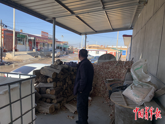 11月13日,山西省应县大穗稔村,一村民家门口堆放着用来取暖的木柴和玉米芯。 中青报·中青网记者 胡志中/摄