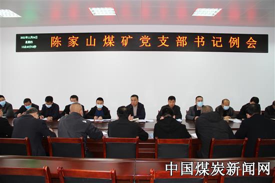 【本网讯】11月4日下午3时,陕煤铜川矿业陈家山煤矿召开11月份党支部书记例会,该矿党委书记、党群各科室负责人、基层各党支部书记共计20余人参加会议,会议在该矿信息楼一楼会议室召开。