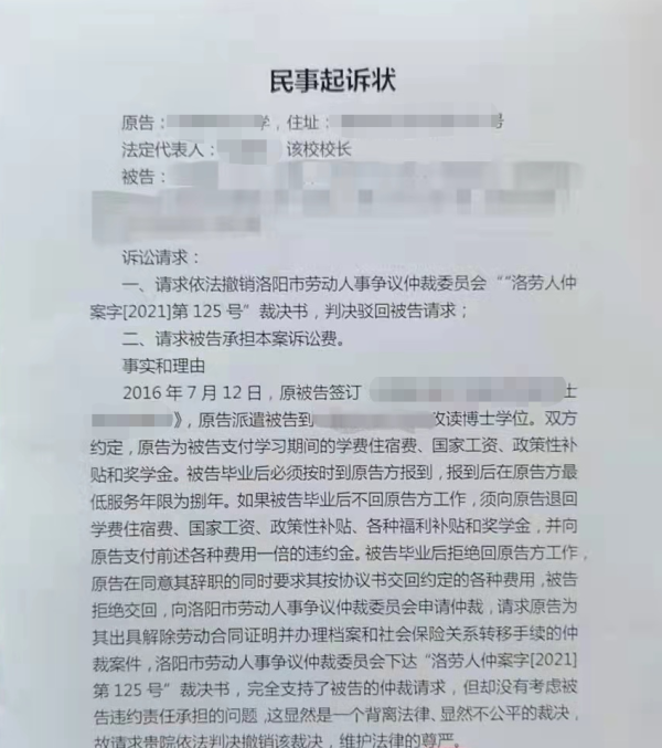| 河南一高校教师读博后违约离职,校方索赔79万 | |||