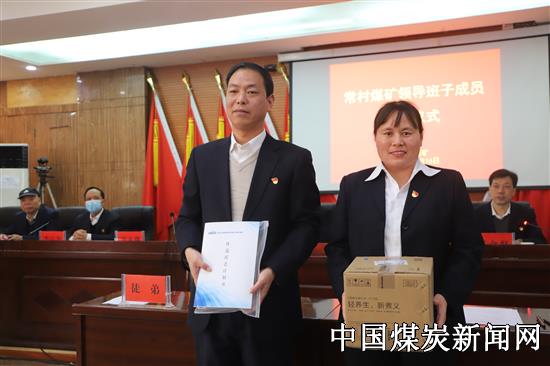 【本网讯】12月16日,河南能源义煤公司常村煤矿党委副书记、纪委书记李永强(左)向师傅(纪委监察审计科职工)赠送拜师礼品,师傅向他赠送《传道授艺计划书》,合影留念。