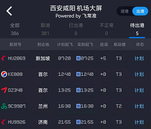 据央视新闻,飞常准App显示,截至12月24日07:00,西安咸阳国际机场进出港航班均大面积取消。全局仅有12个待执行,其中有7个待进港和5个待出港计划。