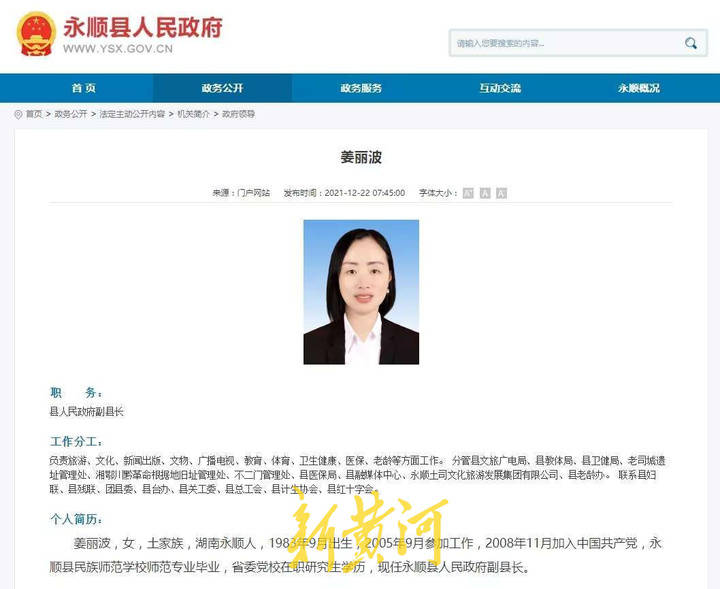 永顺县委组织部:姜丽波任免符合规定 最近几年,姜丽波的名字逐渐走进大众视野。今年3月,全国妇联下发《关于表彰全国城乡妇女岗位建功先进个人、先进集体的决定》,永顺县颗砂乡党委书记姜丽波荣获“全国巾帼建功标兵”称号。在红网的一则相关报道中写道:出生于1983年的姜丽波,从起初的一名普通教师一路走到现任的颗砂乡党委书记,扎根乡村十余载,始终恪守着从“德、能、勤、绩、廉”几方面培育自己,锻炼自己,把“在一方水土为人民服务”作为自身最基本的职责,塑造出了一名女党员干部该具备的全能素质与形象。2016年至今,颗砂乡及姜丽波多次被评为州县脱贫攻坚、平安建设、安全生产等工作先进单位和个人。 12月23日,记者多次拨打姜丽波的电话,但一直无人接听。记者随后拨打永顺县委组织部干部组电话,一位工作人员表示,对于网友反映的情况他们没有听说,(姜丽波)任免“肯定是符合规定的”,当时任免的细节不方便透露。记者随后拨打湘西自治州委组织部电话,一位工作人员表示,“她在2008年被提拔的时候,干部监督部门应该是已经调查过了。” 新黄河记者了解到,类似姜丽波这种“80后”年轻干部,在其他地区也有提拔重用的情况。江苏省宿迁市卫生健康委员会副主任易冰,与姜丽波成长履历颇为相似。易冰1980年12月出生,自考大学本科学历,2003年9月参加工作。2003年9月,易冰从徐州师范大学大专毕业后,在宿迁汇文中学担任两年临时代课教师,其间通过南京师范大学汉语言文学专业本科层次自学考试。2005年8月,易冰前往宿豫中学担任两年教师;2007年9月至2011年2月,26岁的易冰成为了沭阳县李恒镇镇长助理,正式踏入仕途;2011年2月至2011年11月,担任沭阳县李恒镇副镇长,2011年11月至2012年3月,担任沭阳县潼阳镇镇长;2012年3月至2021年7月,担任泗洪县副县长;2021年7月,担任宿迁市卫生健康委员会副主任、三级调研员。进入政府部门后,易冰担任副镇长为9个月,担任镇长不到4个月,之后升任至副县长。