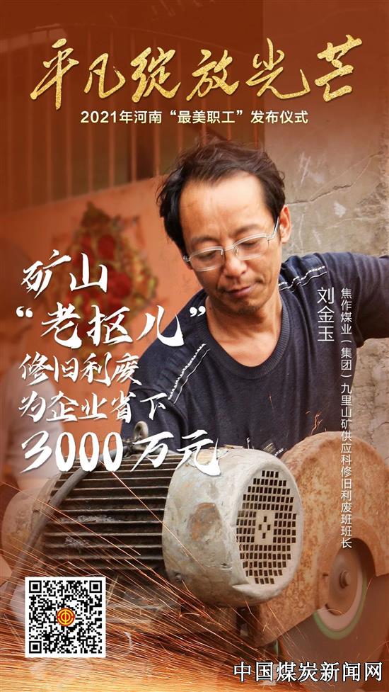 | 焦煤公司刘金玉获评2021年河南“最美职工”:矿山“老抠儿”修旧利废 为企业省下3000多万元 | |||