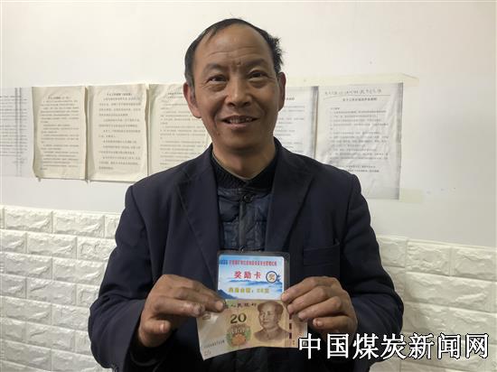 【本网讯】12月1日,河南能源义煤公司石壕煤矿机电队职工姚留随兴高采烈的拿着一张“奖励卡”到安检科成功兑换了20元的现金,“我年龄大了,但心里知道自己的岗位应知应会是什么,就是嘴跟不上趟,老怕出错,没想到这次遇到公司小分队现场提问,我努努劲儿竟然完整的表达出来了,不仅挣了一张‘奖励卡’,也让我有信心掌握更多的知识……”